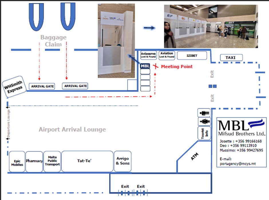 Once you have collected your luggage, exit Terminal 1, proceed to MBL meeting point as shown below: