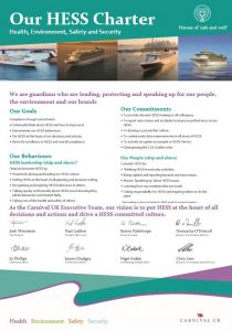 The Charter was written to align us with the UK Chamber of Shipping Safety Culture Initiative, which Carnival UK is a member of. This is designed to encourage its ship owner and operating members to commit to promoting and adopting a positive safety culture within their organisations, leading from the top down.