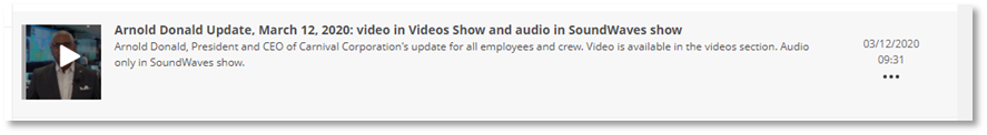 Coming to you from the Fleet Operations Center in Carnival HQ Miami, he is sharing the latest information and personal insights on the continued impact that coronavirus is having on our global operations and what we are doing as a corporation to work better together to keep ourselves, our colleagues and our Guests safe and well.