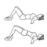 Lie face-up, knees bent, and feet planted on the floor. Drive through heels, contracting the glutes to send hips toward the ceiling. Your body should form a straight line from shoulders to knees. Lower back down and repeat.