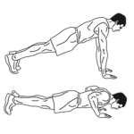 Start in a high plank position, shoulders over wrists, core, glutes, and legs engaged. Bend the elbows to lower chest to the floor. Elbows should point back at a 45-degree angle. Push back up to starting position, making sure to keep hips in line with the rest of the body. If you can’t push up without dipping hips or get chest to floor, drop to knees to build strength. Repeat.