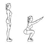 Start standing with feet just wider than hip-width apart, toes pointed slightly out, clasp hands at chest for balance. Send hips back and bend at knees to lower down as far as possible with chest lifted. Press through heels back up to starting position.