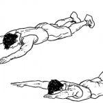 Lie face down with legs extended and hands placed on mat in front of forehead. Lift arms, chest, and legs off the floor. Contract the glutes and thighs and relax the shoulders and neck. Lower back down and repeat.