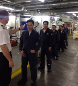 10:15 to 12:00 I work with the other Wipers in the engine room; cleaning and painting or other jobs as assigned by the First Engineer.