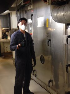 My duties during this period consist of carrying out the cleaning, sanitising and changing of filters on the Air Handling units and cabin fan coils that we have onboard. I also report any defects with the units or the AC Rooms that require repairs, helping to carry out this work if required.