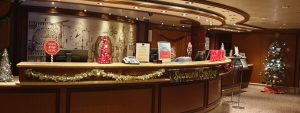 15:30 Laurence and I are getting the Purser’s Office ready for Christmas by putting up some decorations.
