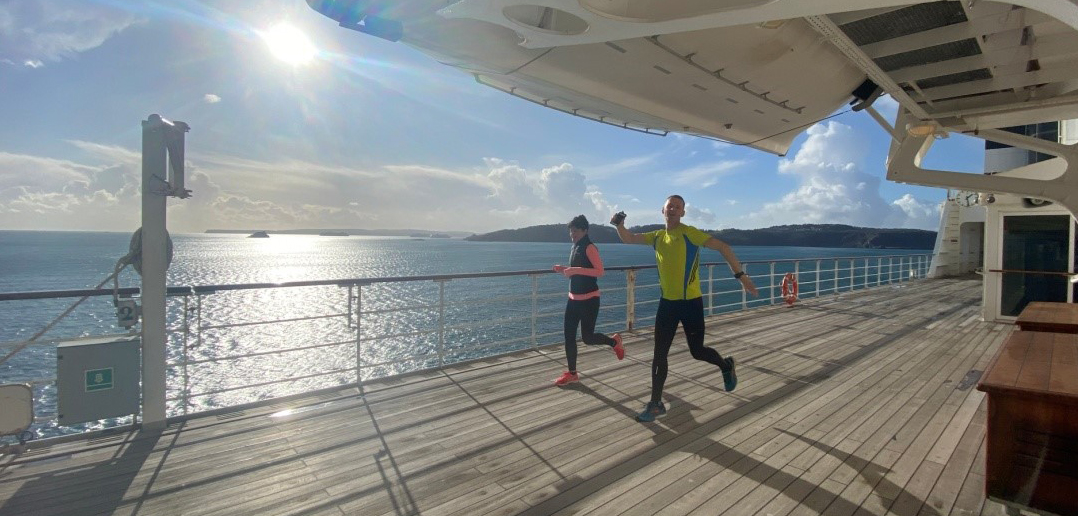 The Promenade Deck is a crew favourite for stretching the legs and taking in some of the fresh sea air we’ve become so accustomed to. Despite being winter, the Devonshire coast has treated us to some crisp, sunny days and our avid runners are certainly making the most of it.