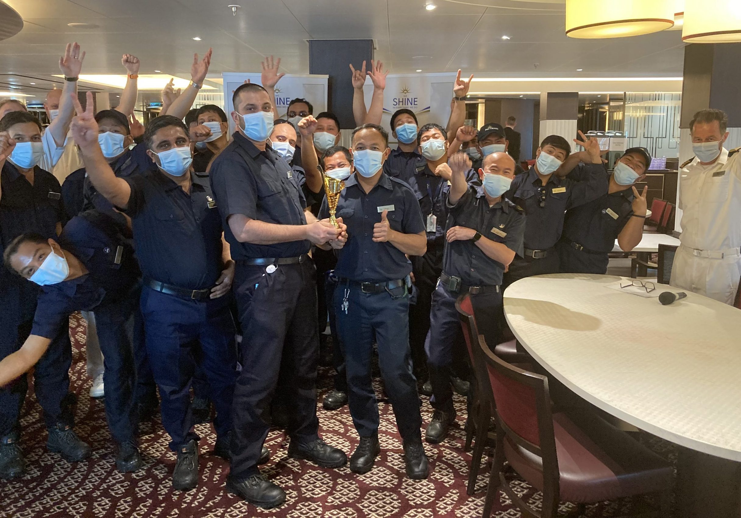 “The team worked extremely hard in assisting the hotel team in securing the open deck sun loungers during the highest guests counts we’ve had so far. They also kept the ship looking her best and to the highest standards by painting the chairs and table bases, and cleaning and painting balconies during busy turnaround days. Thank you for all your support – you ALL really do SHINE!”