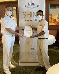 “Chaitanya took up the challenge of raising awareness about our Culture Essentials and SHINE service promise amongst the housekeeping team and wider ship’s company. He came up with the idea to highlight examples of our colleagues’ showcasing our Culture Essentials, sought out examples of each behaviour and displayed pictures of colleagues with their examples on the Culture Essentials and SHINE boards for everyone to be inspired by.”
