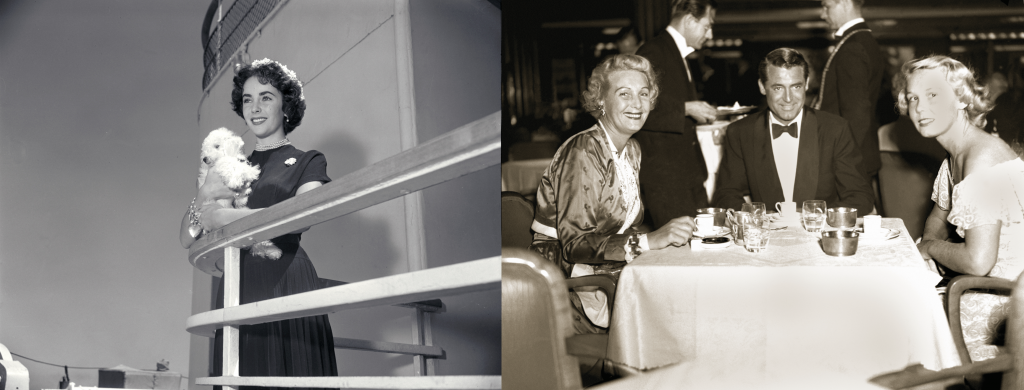 (Left) Elizabeth Taylor on Queen Mary, (Right) Cary Grant on Queen Mary