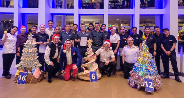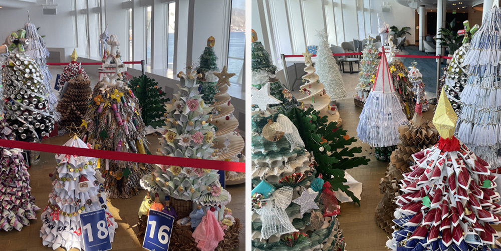“In the days running up to Christmas Eve we held an event where all the trees were displayed in Iona’s Atrium and we asked our guests to vote for their favourite. We had 19 trees overall and the most fantastic array of creativity and imagination you’ve ever seen – all made from discarded materials found on board which were destined for recycling and offloading.”