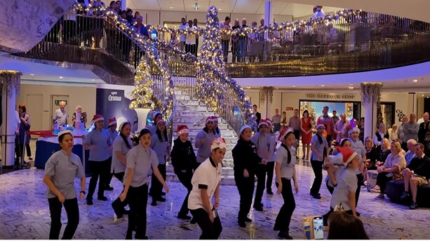 Our Housekeeping Team presented a fantastic dance routine for our guests after the Officers and Crew Carol singing event. This was a super energetic and entertaining moment for our guests who really enjoyed seeing the team perform, giving them a great reception and rapturous applause!