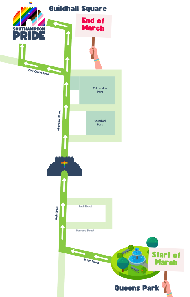 Please do come along to watch the parade and join the Pride celebrations! The Pride March is expected to set off along the High Street towards the Bargate at approximately 11:00am. Check out the route below, and find out more here: