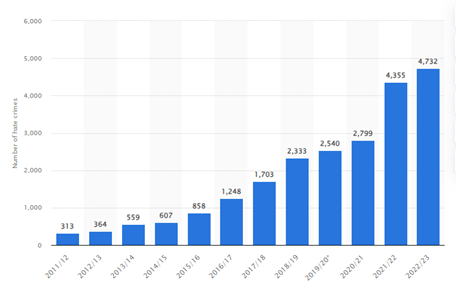 Number of police recorded transgender hate crimes in England and Wales from 2011/12 to 2022/23