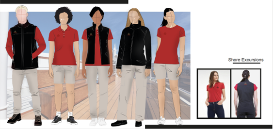 An enhanced uniform for working ashore which will be comfortable to wear and made with quality fabric, whilst ensuring they are easily identifiable by guests.
