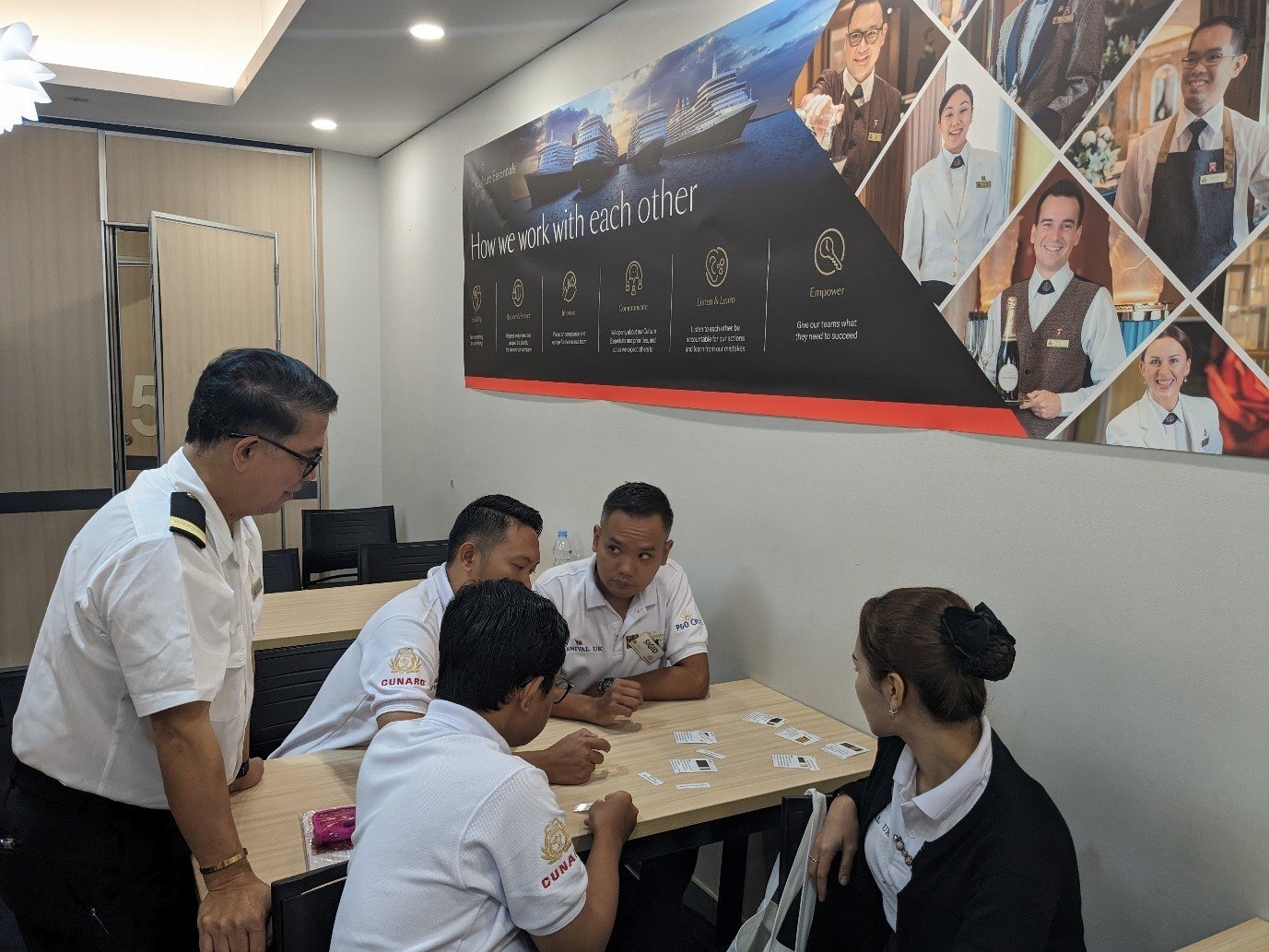 Caren Kruger, Learning & Development Officer, Queen Anne, worked with Cunard Guest’s Experience teams to develop the programmes, and travelled to the new centres to deliver the ‘train the trainer’ and initial sessions. So far, over 60 candidates have completed the training!