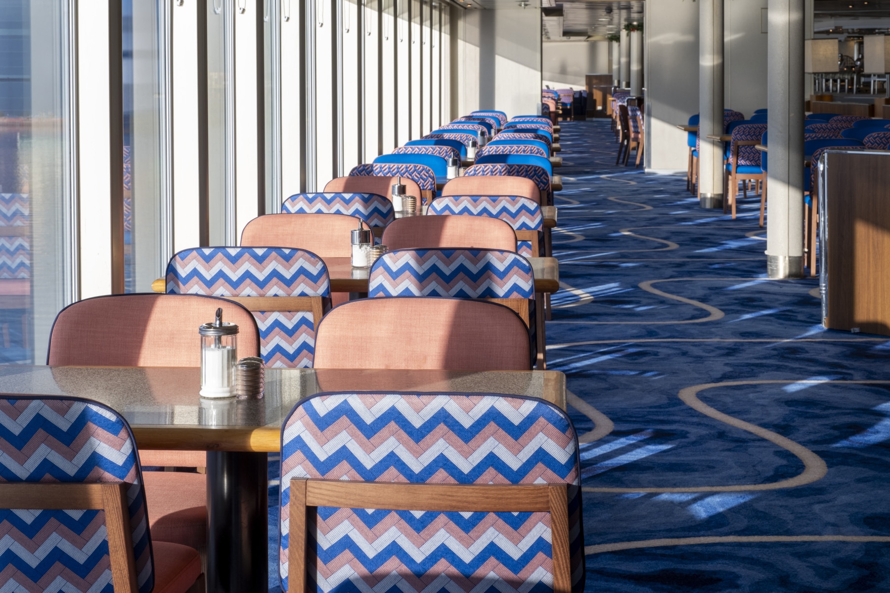 Be it a cabin, a Mini-suite or a Suite, in most accommodation types, new curtains, scatter cushions, desk chairs, sofas and carpets have all been installed.