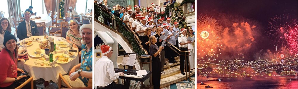 Officers and crew also sang Christmas carols to guests in the Atrium, and the festivities wrapped up in style with Aurora ringing in the new year with a spectacular fireworks display in Madeira.