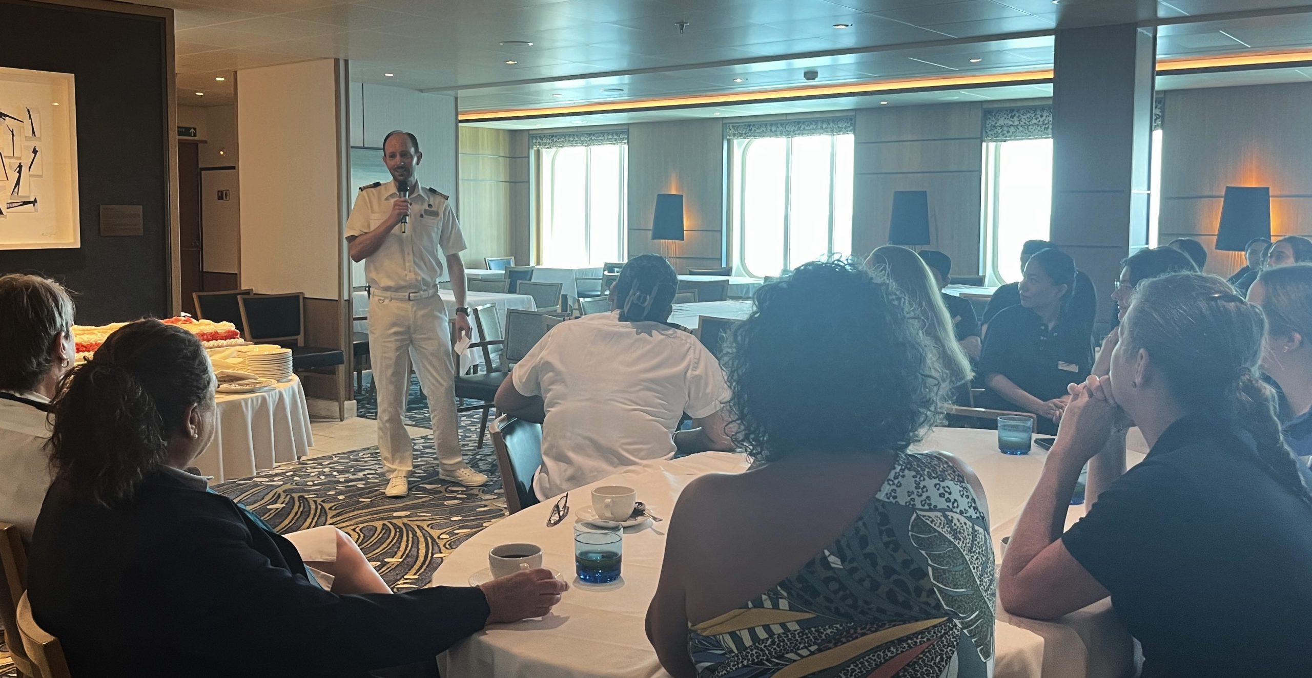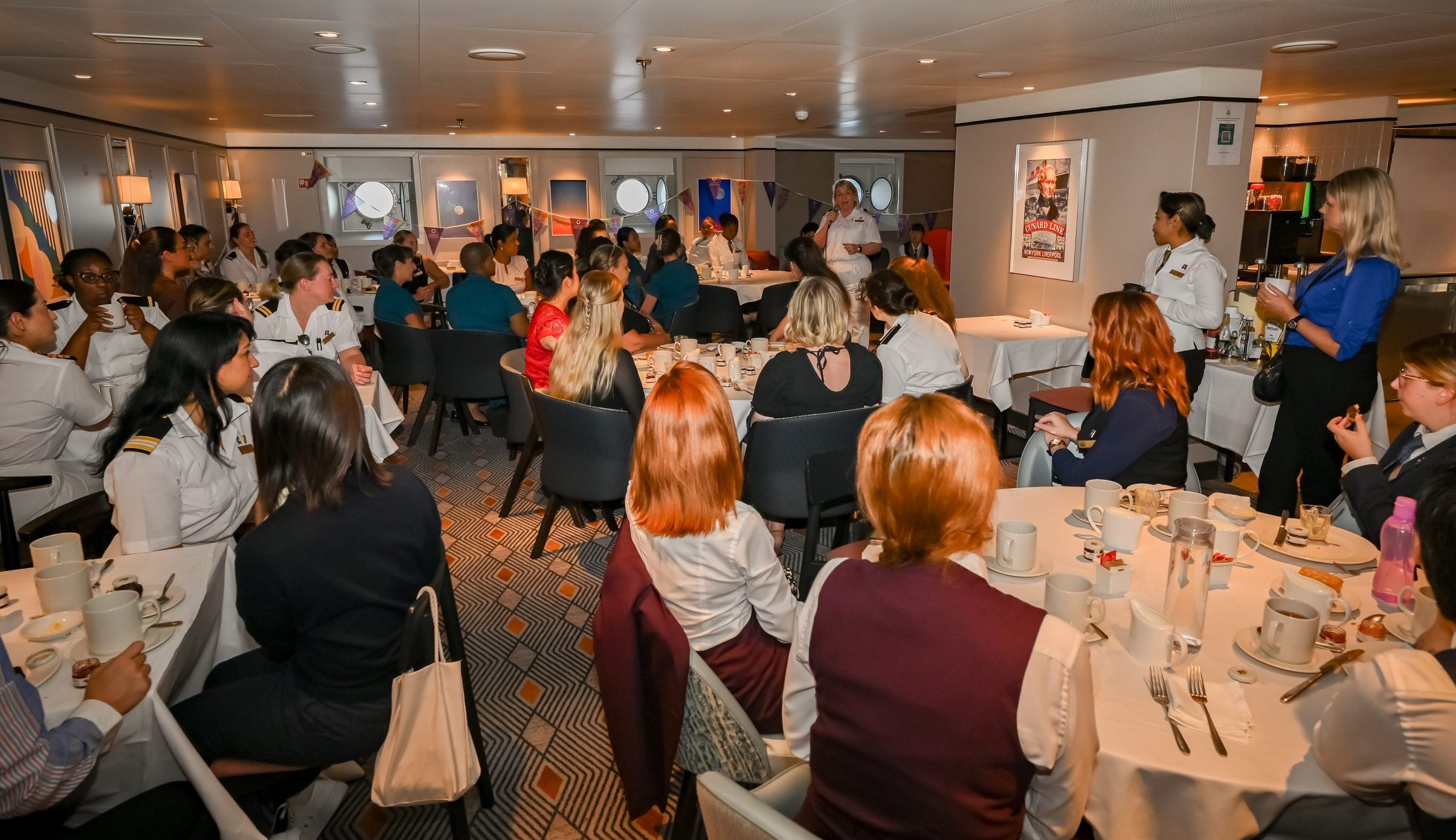 On Queen Anne, Captain Inger Thorhauge invited all women crew to an afternoon tea, to share their achievements, stories of their working lives at sea, and to support each other and bond in a relaxing atmosphere.