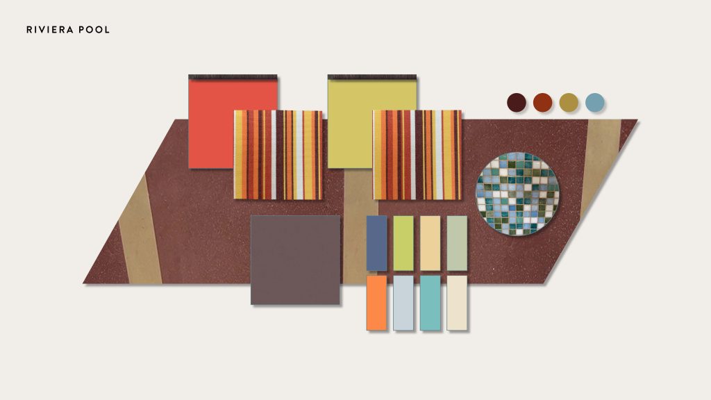 Riviera Pool: Emulating the sorbet hues of parasols on the Italian Riviera, this swimming spot will have new tiling and furniture in sophisticated corals and aquamarines.