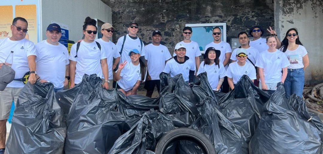 The team collected a huge amount of rubbish, filling a 10m3 container. Afterwards everyone enjoyed a gathering in the cruise park where children from the local school sang songs and the local Women’s Association served hot dogs to all the volunteers.