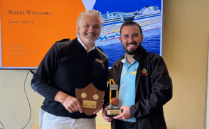 Despite the rain, both ships were eager to make the most out of their shared time. Upon arrival, QM2’s crew was greeted by Marco, AIDAbella’s HR manager, who graciously welcomed them aboard. Marco’s hospitality set the tone for the day, beginning with a review of house rules and a brief orientation. As the group reached Deck 13, the skies finally began to clear!