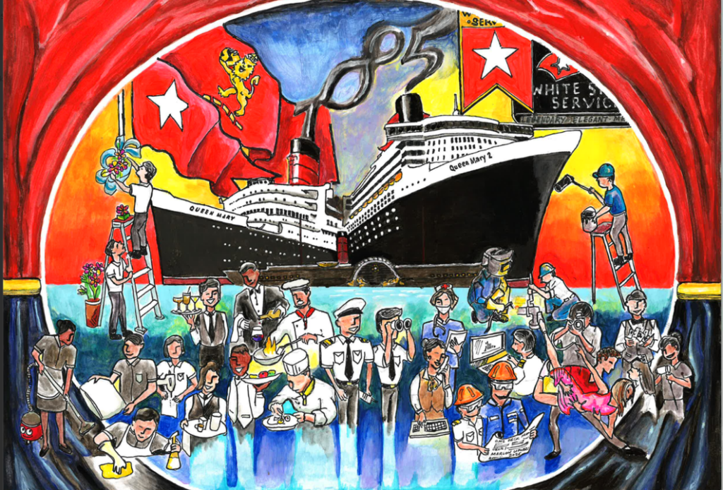 His entry in the Art category (below), captured the ‘now and wow’ of Cunard in vibrant colours – with a nod to our 185th year at sea, our famous White Star Service and our fantastic crew, showcasing creativity and the wonderful world of Cunard. Congratulations, Marlon!