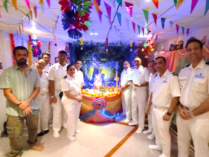 Ganesh Chaturthi was celebrated with deep devotion and creativity. The team spent a month preparing a stunning set from scratch for Ganesh Chaturthi, dedicating time each evening to bring it to life. Once the festival began a Ganesh idol was placed, daily prayers held and sweets shared as blessings, symbolising joy, prosperity and good relationships. Over 200 crew took part is this 7 day celebration!