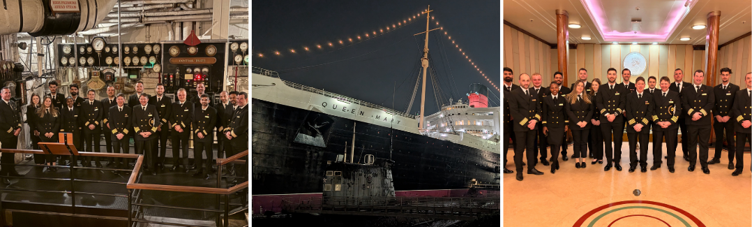 Captain Andrew Hall, Chief Engineer Peter Redding, and several Maritime Officers from Queen Mary 2 had the privilege of an exclusive guided tour around Queen Mary during the ship’s call to Los Angeles.