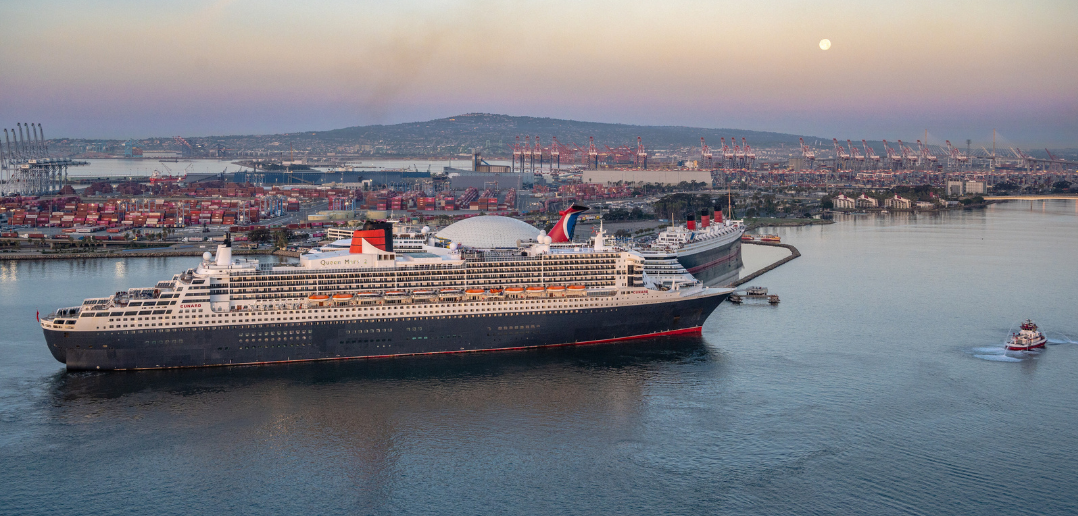 Cunard marked a rare and historic maritime moment on 2 February, when Queen Mary 2 anchored off the coast of Long Beach to reunite with her legendary namesake, the historic Queen Mary for the first time in 20 years.