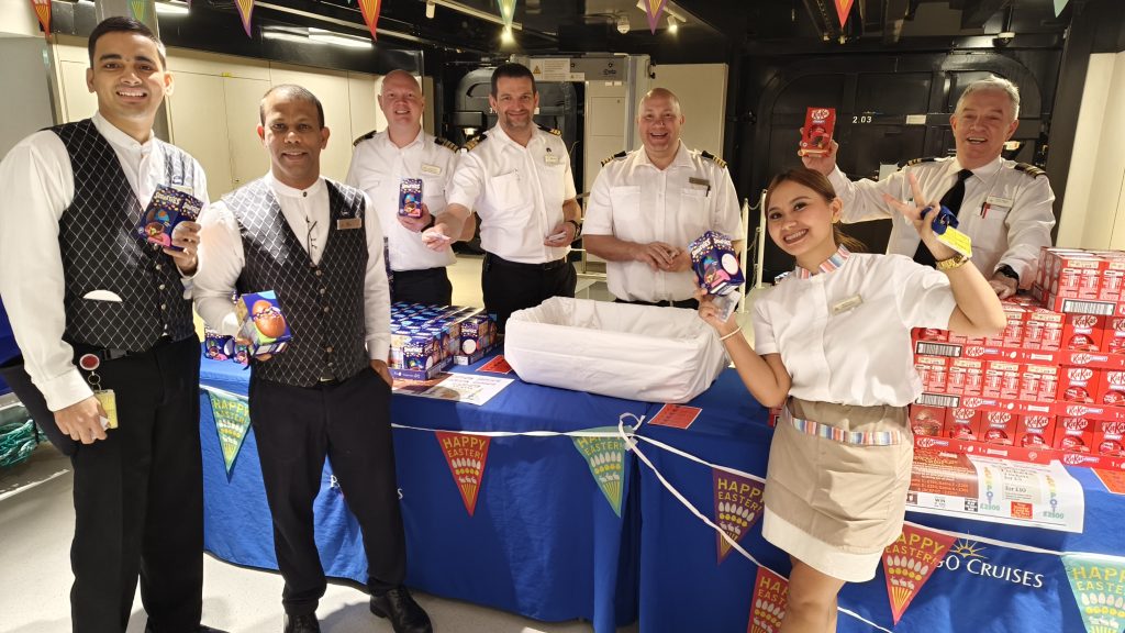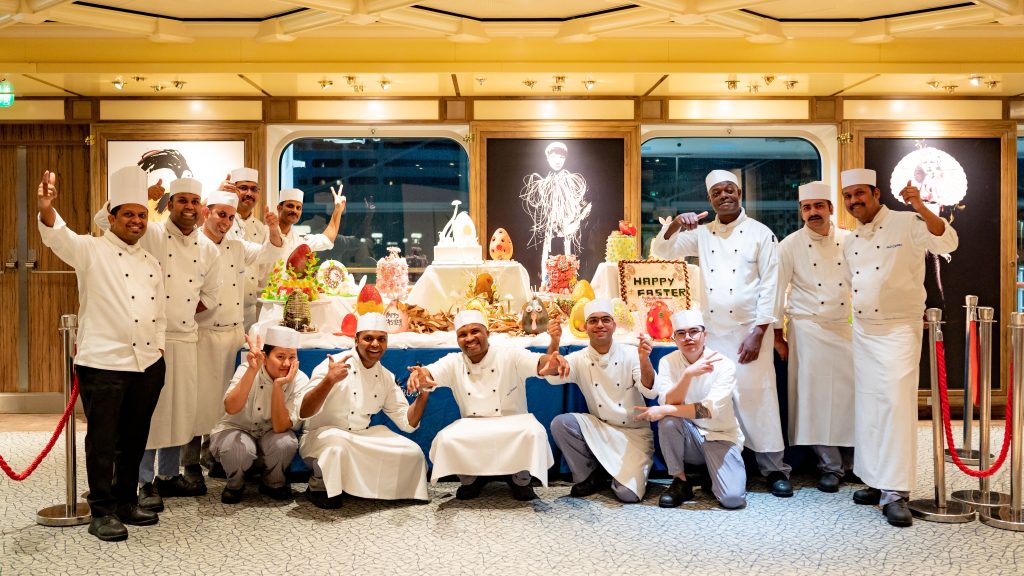 On Azura, crew members received easter chocolate and an Easter Vigil Mass was held in the Playhouse Theatre, where both crew and guests came together to celebrate, accompanied by the sounds of a special choir performance organised by crew.